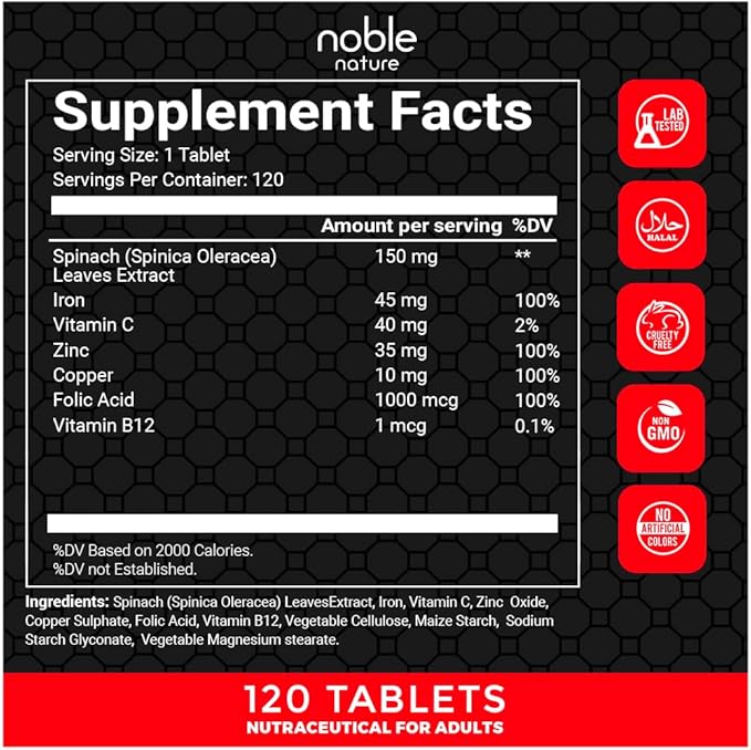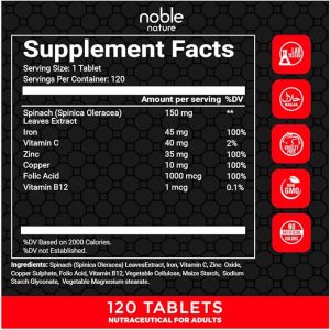 Noble Nature Iron with Folic Acid & Spinach Extract – 120 Tablets