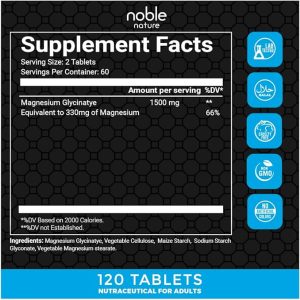 Boost your health with Noble Nature Magnesium Glycinate, a highly bioavailable and easily absorbable form of magnesium designed to support muscle relaxation, sleep quality, cardiovascular health, and bone strength. Unlike other forms of magnesium, magnesium glycinate is gentle on the stomach and does not cause digestive discomfort, making it the ideal choice for daily supplementation.